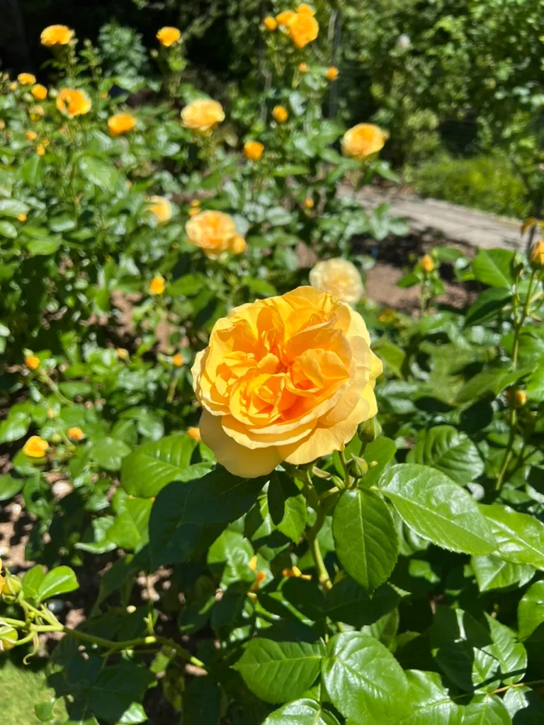 Planted in rose beds, mixed borders, foundation plantings, and mass plantings for continuous color, spaced 2-3 feet (0.6-0.9 m) apart. The cluster flowering habit provides more landscape color per plant than hybrid teas. Lower hedges of floribundas are effective along paths and driveways. Disease-resistant cultivars for the Pacific Northwest include 'Iceberg' (white), 'Julia Child' (yellow, fragrant), 'Sexy Rexy' (pink), and Knock Out® series (various colors, exceptional disease resistance). Suitable for large containers (minimum 10-gallon).How to Identify