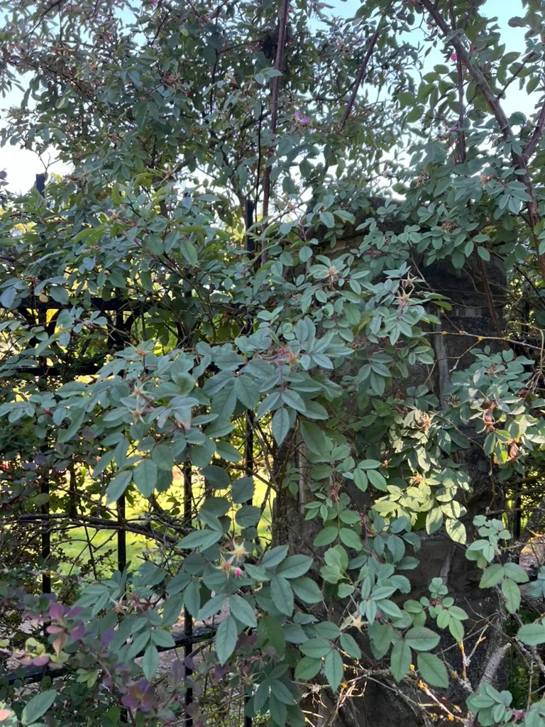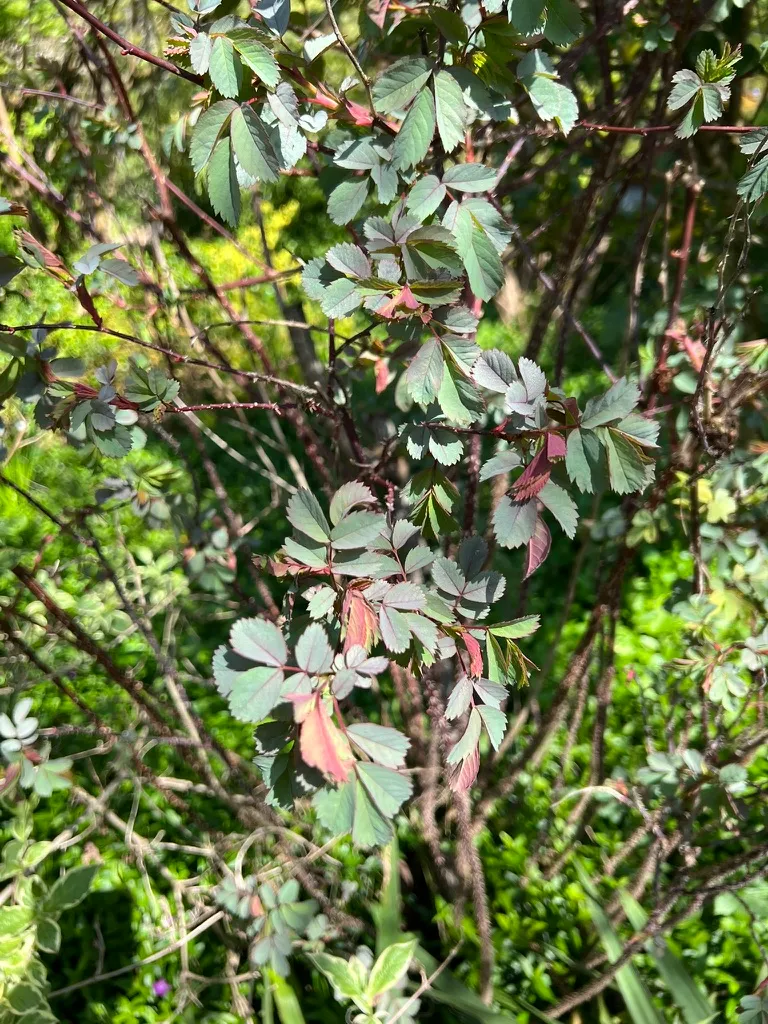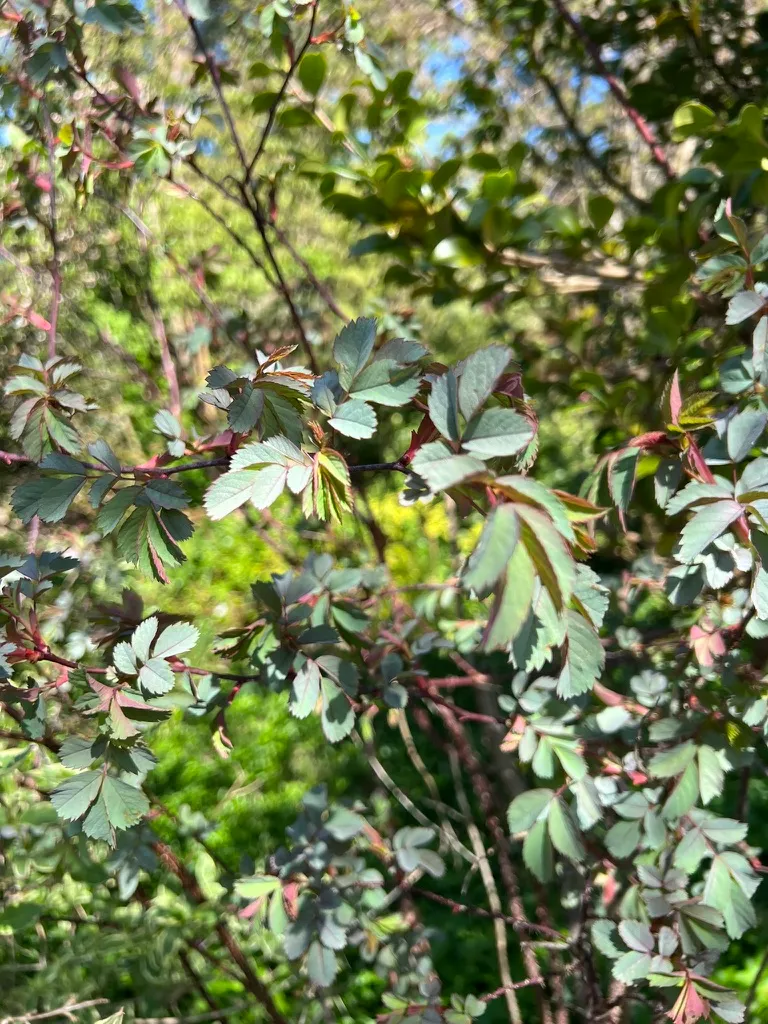 Planted in mixed borders, hedgerows, and naturalized areas where the unique foliage color provides contrast with green-leaved plants, spaced 4-5 feet (1.2-1.5 m) apart. The purple-blue foliage is a valuable design element, particularly effective against silver-leaved plants (Artemisia, lavender) and chartreuse foliage. Cut branches are prized in floral arrangements. Hip-laden branches provide winter interest. Effective as an informal hedge. A Great Plant Picks recommendation.How to Identify