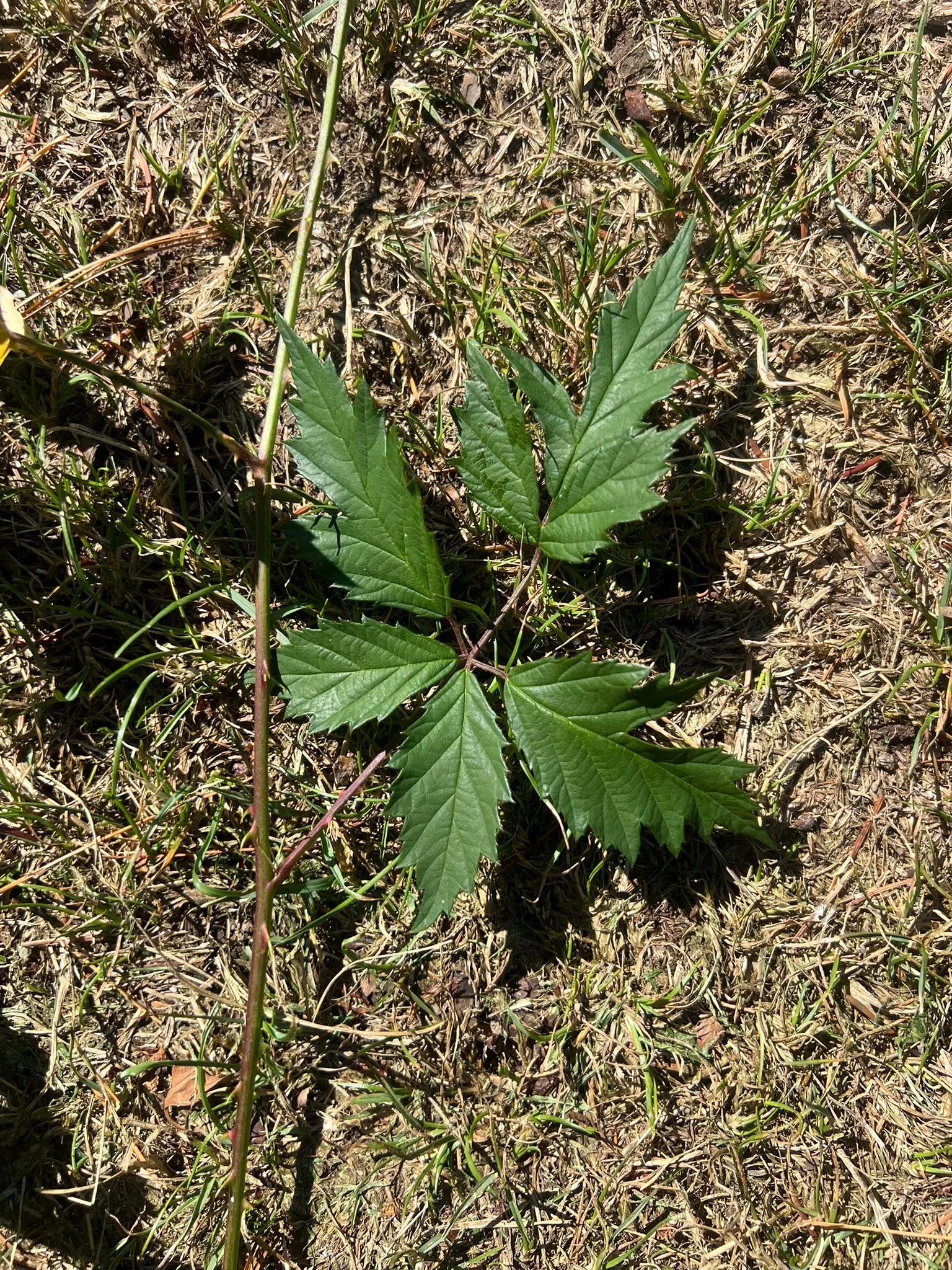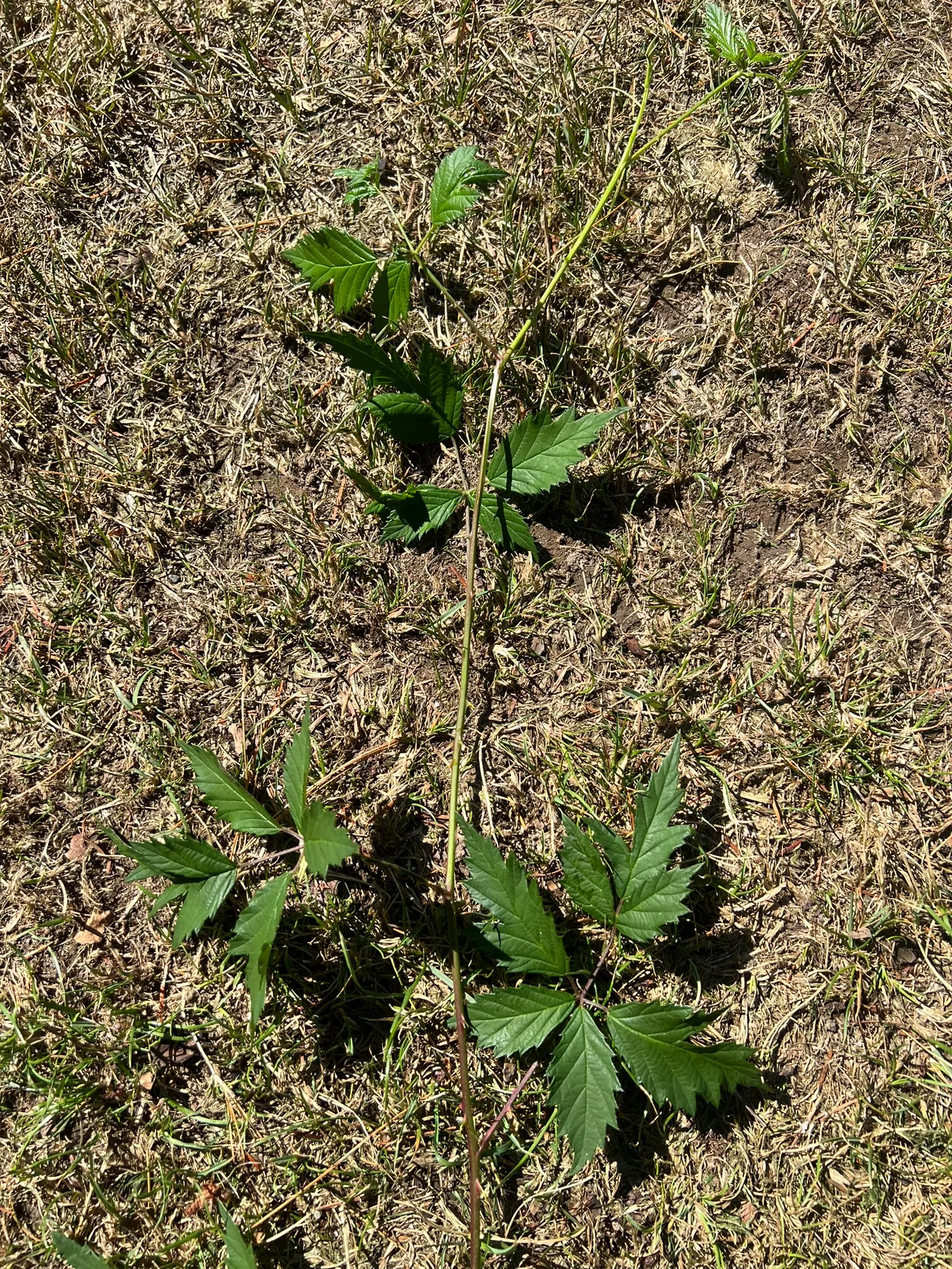 No pruning applicable in a weed context. Canes are cut at ground level and root crowns are dug. In managed berry production settings, spent floricanes are removed after fruiting (July–August), and primocanes are trained for the following year.Pruning Schedule