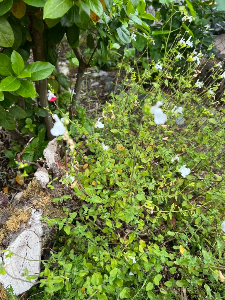 A compact, semi-woody subshrub in the family Lamiaceae, a named cultivar of Salvia microphylla native to the oak woodlands, canyon scrub, and rocky slopes of the Sierra Madre Occidental in Mexico and southeastern Arizona. Plants form dense, rounded clumps 24–36 inches (60–90 cm) tall and wide of small, oval to rounded, strongly aromatic, slightly sticky leaves 0.5–1.25 inches (1.5–3 cm) long on semi-woody stems. From late spring through fall, upright racemes carry tubular, two-lipped flowers 0.75–1 inch (2–2.5 cm) long in a distinctive bicolor pattern: bright red upper lip and white lower lip. The flower color is temperature-sensitive — cool conditions (below 60°F / 16°C) produce mainly white flowers; very hot conditions produce mainly red flowers; the classic red-and-white bicolor occurs at moderate temperatures (65–75°F / 18–24°C). In the Pacific Northwest, where temperatures are frequently in the bicolor range, the classic pattern is reliably displayed for most of the season. Intensely attractive to hummingbirds. Hardy to zone 7 with good drainage. Non-toxic.