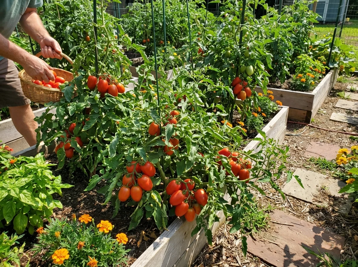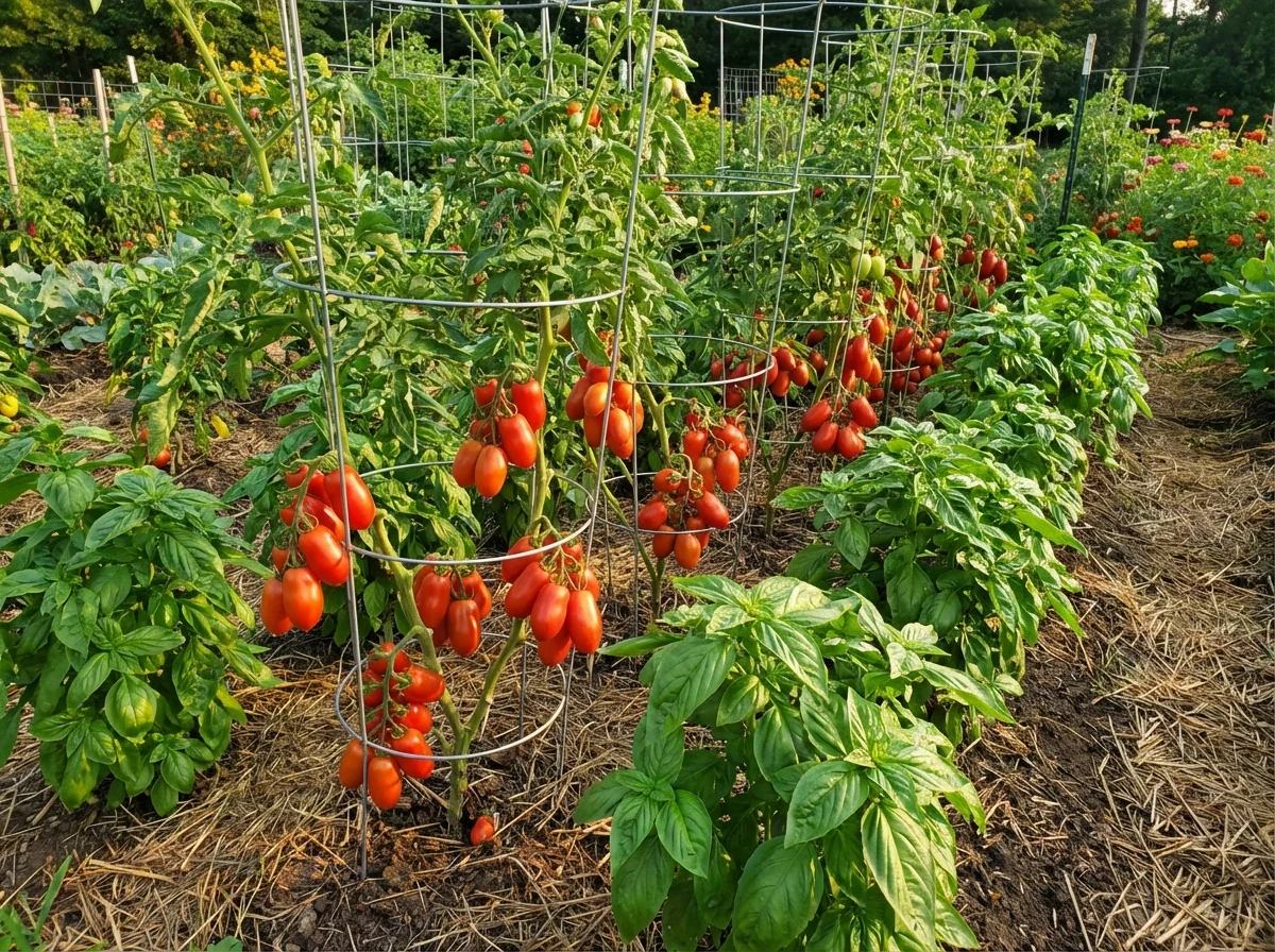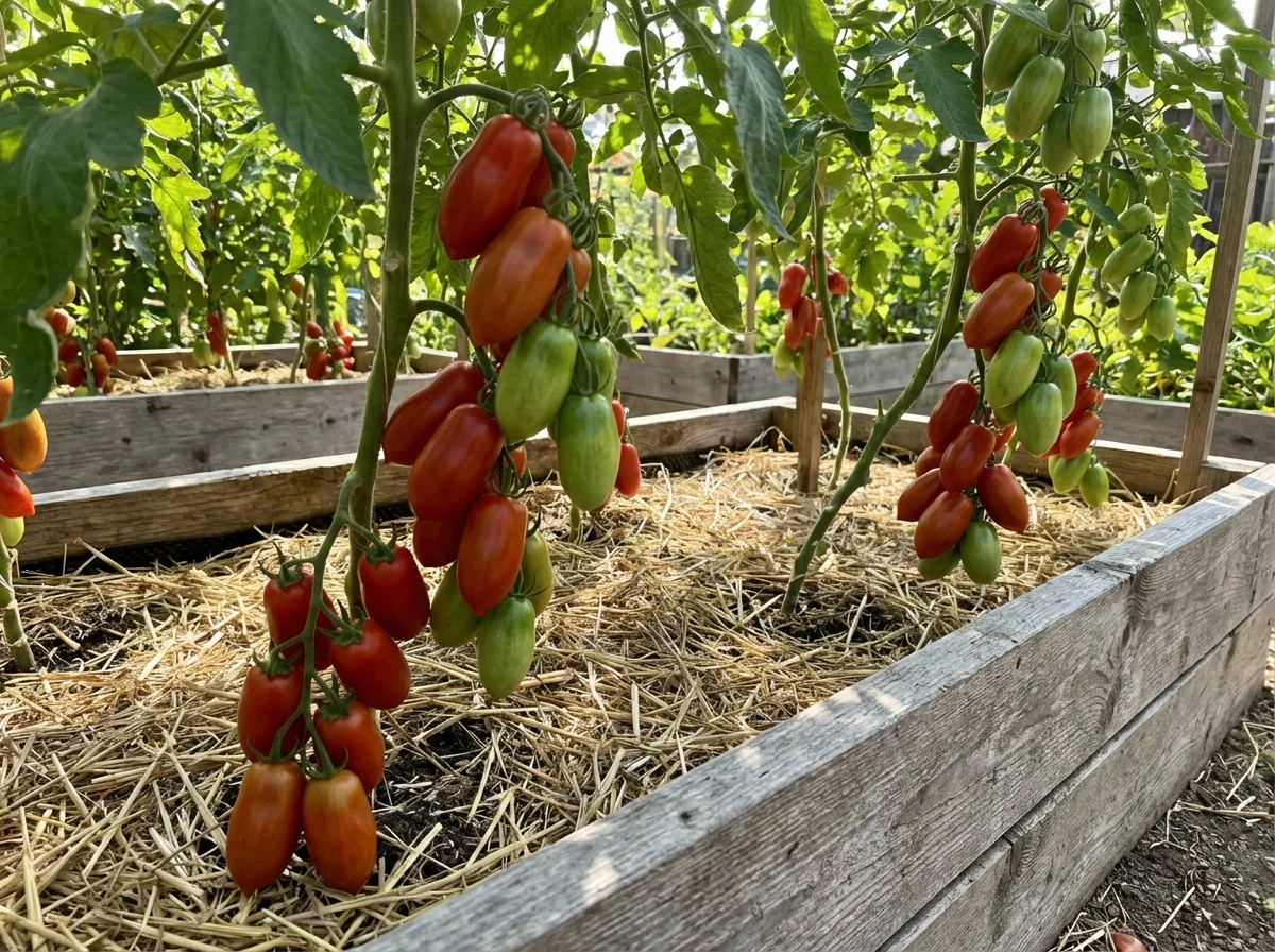 Solanum lycopersicum 'Roma' requires consistent care for optimal fruit production. Plant in well-draining, fertile soil enriched with compost after soil temperatures reach 60°F and all danger of frost has passed. Provide deep, consistent watering at the base of plants to maintain even soil moisture, avoiding overhead watering which can promote disease. Apply a balanced fertilizer at planting, then switch to a lower-nitrogen, higher-phosphorus fertilizer once flowering begins to encourage fruit development. Mulch around plants to conserve moisture and suppress weeds. Support plants with cages or stakes despite their determinate nature, as the concentrated fruit load can cause branches to break.Pruning