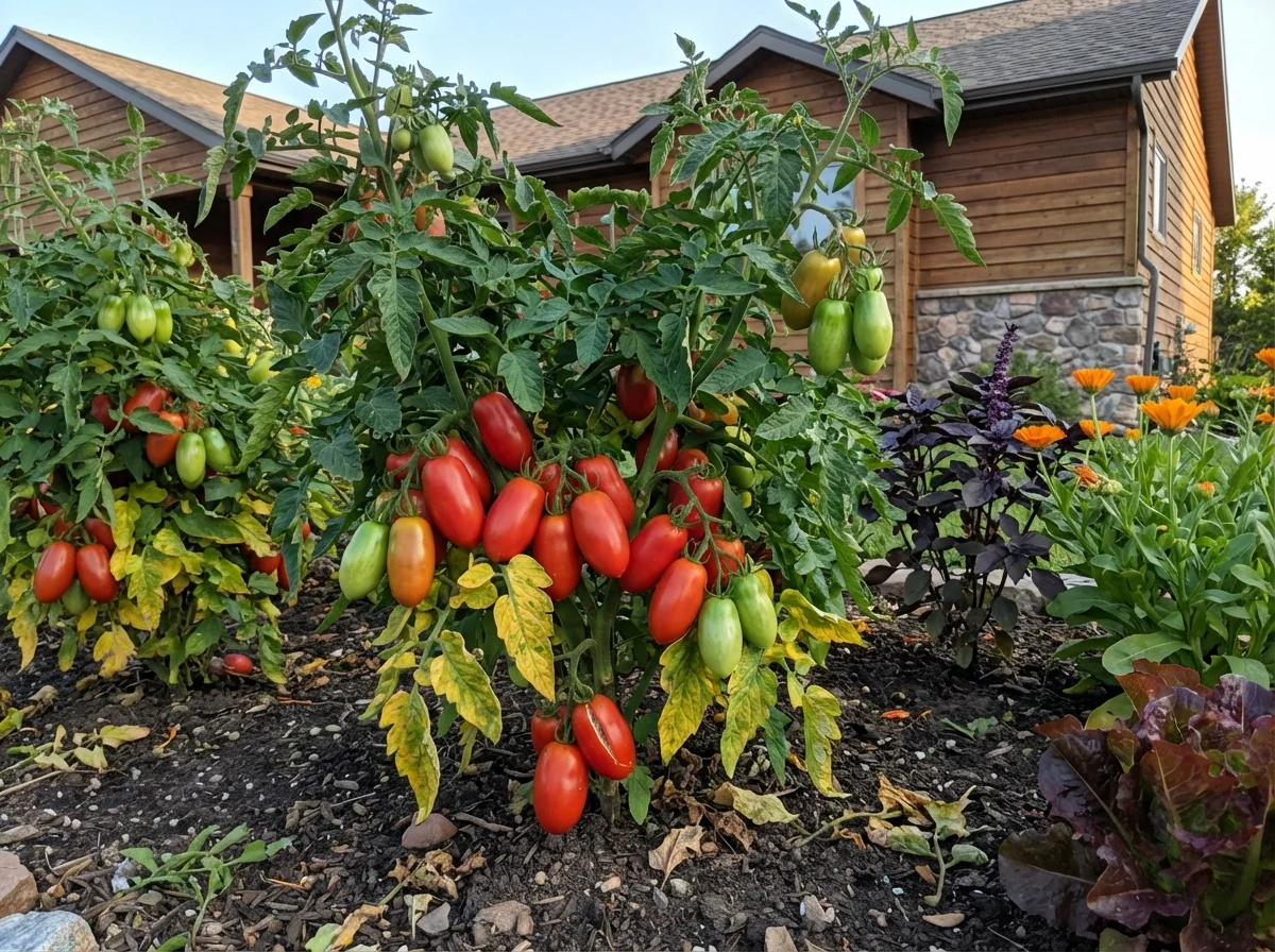 Solanum lycopersicum 'Roma' requires minimal pruning due to its determinate growth habit. Remove suckers that develop between the main stem and branches when they are small to improve air circulation and concentrate energy into fruit production. Remove lower leaves that touch the ground to prevent soil-borne diseases. Once the plant sets its terminal flower cluster, avoid removing growing tips as this will reduce yield. Remove any diseased, damaged, or yellowing foliage promptly throughout the growing season to maintain plant health.Maintenance Level