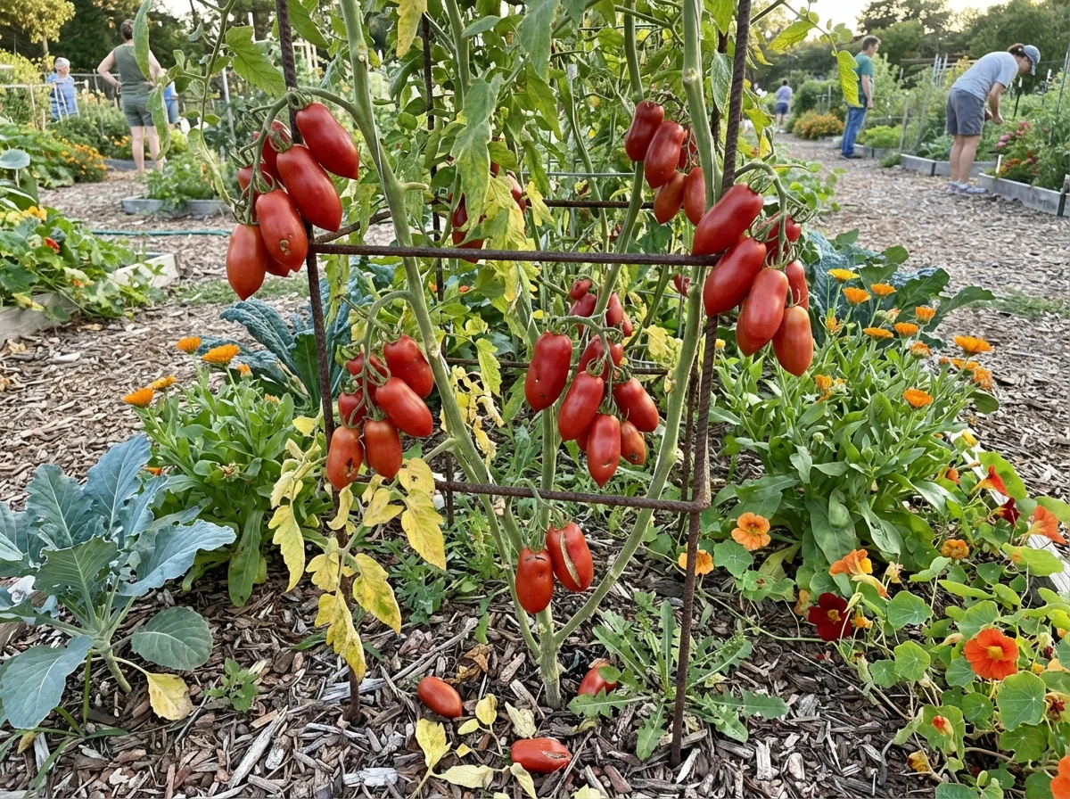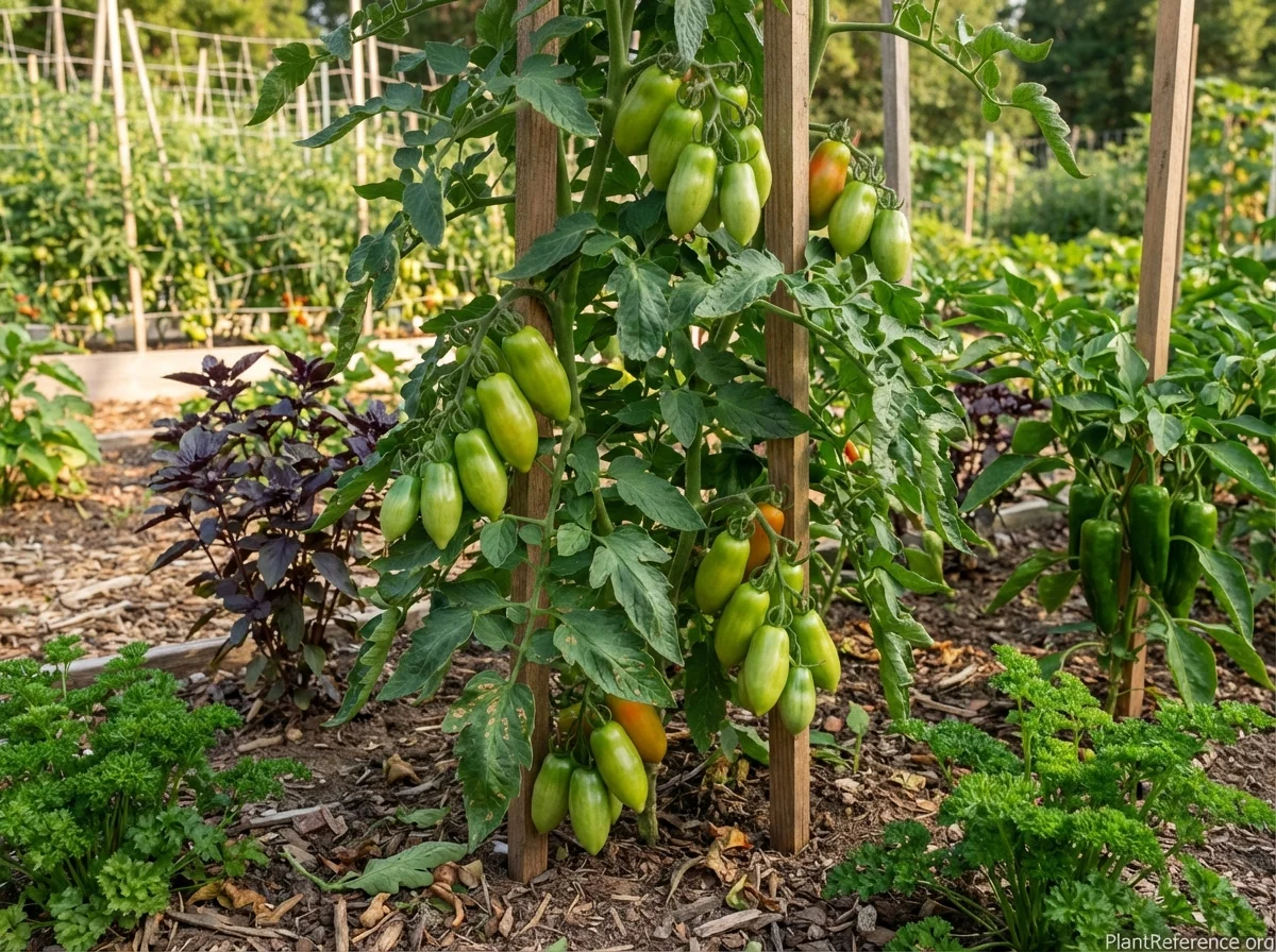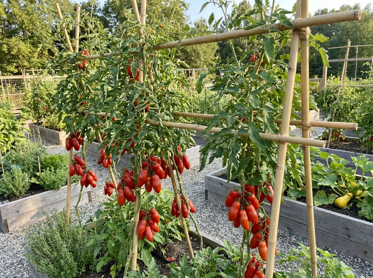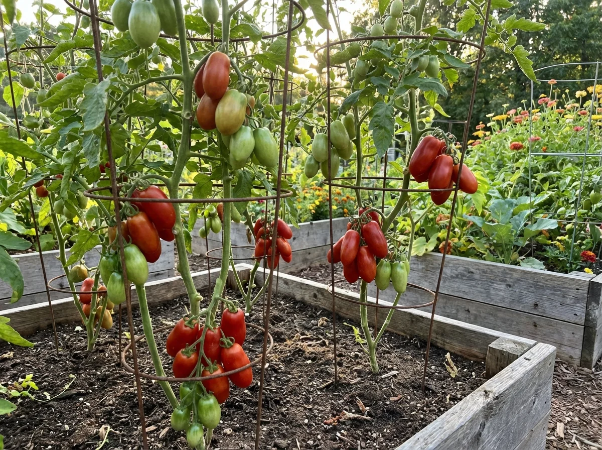 Solanum lycopersicum 'San Marzano' requires consistent, attentive care to achieve optimal fruit production and the exceptional quality this variety is known for. Provide deep, regular watering at the base of the plant, maintaining consistently moist but not waterlogged soil, as irregular watering patterns can lead to blossom end rot and fruit cracking that diminishes the premium quality. Apply balanced fertilizer at transplanting, then transition to lower-nitrogen, higher-potassium fertilizer once flowering begins to promote superior fruit development over excessive vegetative growth. Install robust support structures such as heavy-duty cages or substantial trellises early in the season, as these vigorous indeterminate plants continue growing and producing considerable fruit loads throughout the entire growing period. Apply thick organic mulch around the base to retain soil moisture, regulate soil temperature, and prevent soil-borne diseases from splashing onto lower foliage during watering or rainfall.Pruning