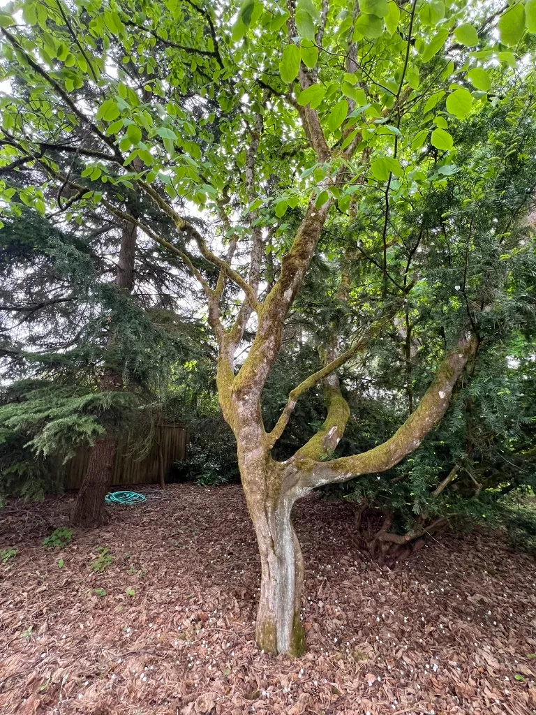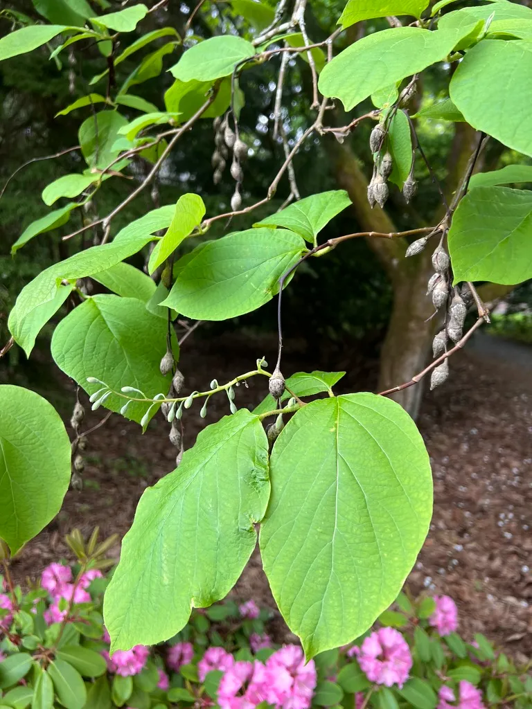 Planted as a specimen or accent tree where the bold foliage texture and fragrant flowers can be appreciated, spaced 15-20 feet (4.6-6 m) from other trees. The large, round leaves provide a bold, almost tropical textural contrast in mixed plantings. Site near seating areas to enjoy the fragrance. Effective at woodland edges and in courtyard settings. Combines well with fine-textured plants (ferns, Japanese maples) for contrast. Less commonly available than S. japonicus but well worth seeking out.How to Identify