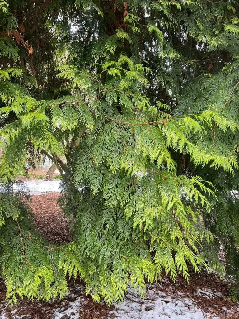 Planted as a specimen and large-scale screen in parks, institutional grounds, and large residential properties, spaced 12–15 feet (3.7–4.6 m) from adjacent plants. Full sun maximizes the golden variegation. The cream-yellow to golden outer foliage provides contrast against dark green conifers in mixed plantings. Eventual height of 40–60 feet (12–18 m) limits use to sites with adequate vertical clearance.How to Identify