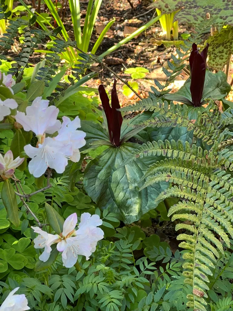 Giant purple wakerobin is one of the most spectacular Pacific Northwest and Klamath-Siskiyou region native wildflowers for the shade garden, producing some of the largest and most richly colored sessile trillium flowers of any species hardy in this region. Exceptional combined with other Siskiyou natives and with shade-tolerant PNW companions: Asarum caudatum, Polystichum munitum, Disporum, and Dicentra formosa. A plant of significant botanical and educational interest for the horticulture classroom. Only nursery-propagated stock is appropriate; wild collection is harmful and illegal.How to Identify