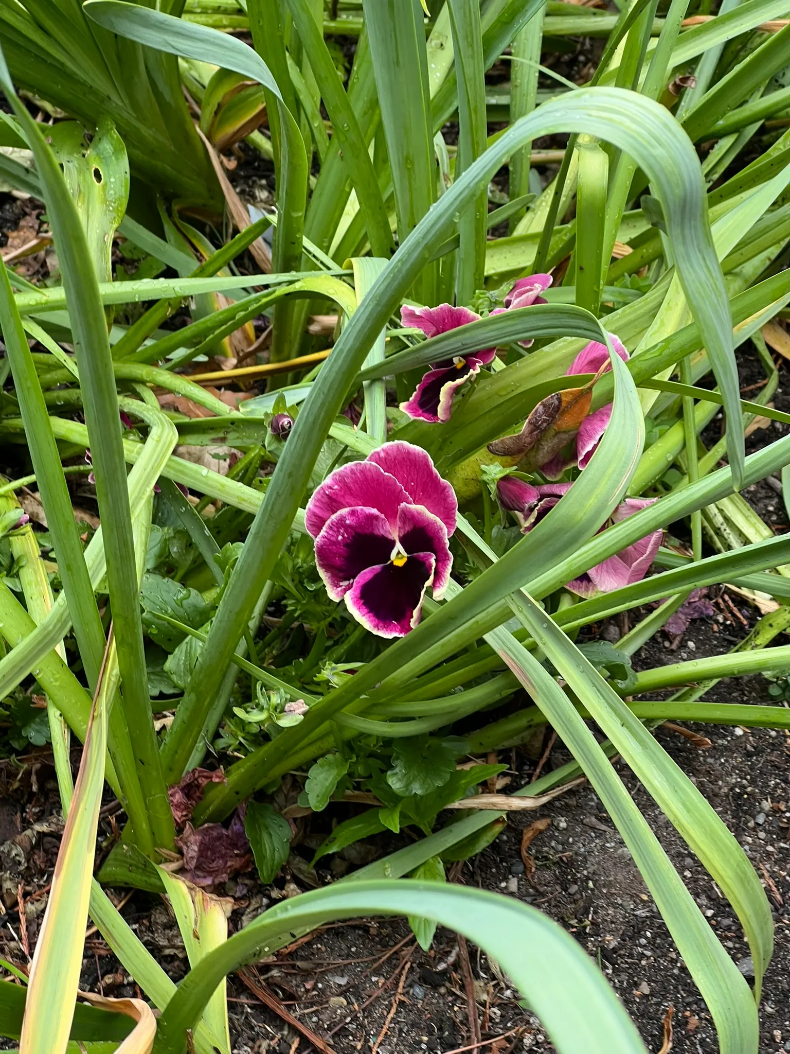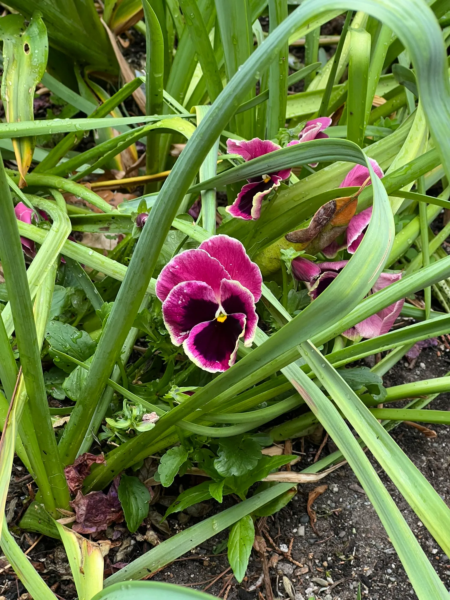Plant in full sun to partial shade in moist, well-drained, moderately fertile soil. In Pacific Northwest gardens, plant autumn-established pansies September through October for the longest winter-to-spring display; plant spring pansies as soon as the soil can be worked, February through March. Water regularly and fertilize every two to three weeks with a balanced liquid fertilizer during active growth. Deadhead spent flowers frequently to prolong blooming. Replace plants when summer heat causes stem elongation and reduced flowering — typically June in warmer Pacific Northwest locations. Slugs can be damaging to young plants in the Pacific Northwest autumn.Pruning