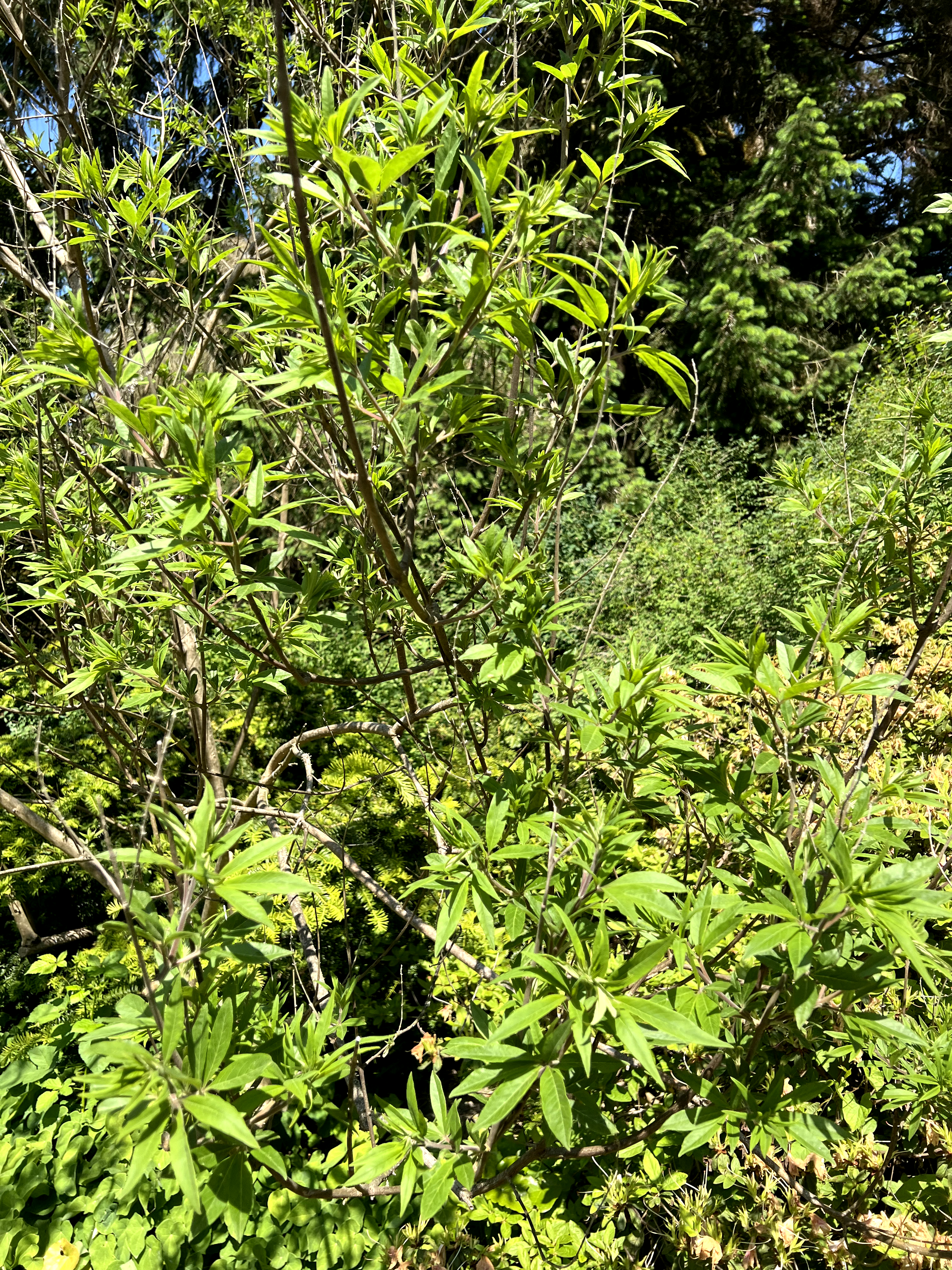 Planted as a specimen or in mixed borders where the late-summer lavender-blue flower spikes and aromatic gray-green foliage provide Mediterranean character, spaced 8-12 feet (2.4-3.7 m) apart. Valuable for late-season bloom when few other woody plants are flowering. Effective in hot, dry, sun-baked locations where many other shrubs struggle. Combines well with other Mediterranean-climate plants (Lavandula, Rosmarinus, Cistus). In the Pacific Northwest, best in USDA zones 7-8 or warmer microclimates.How to Identify